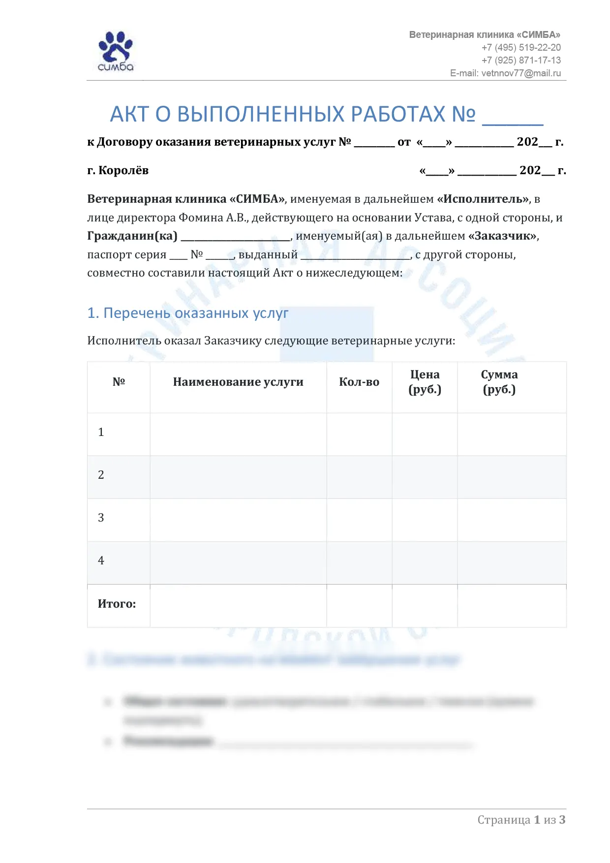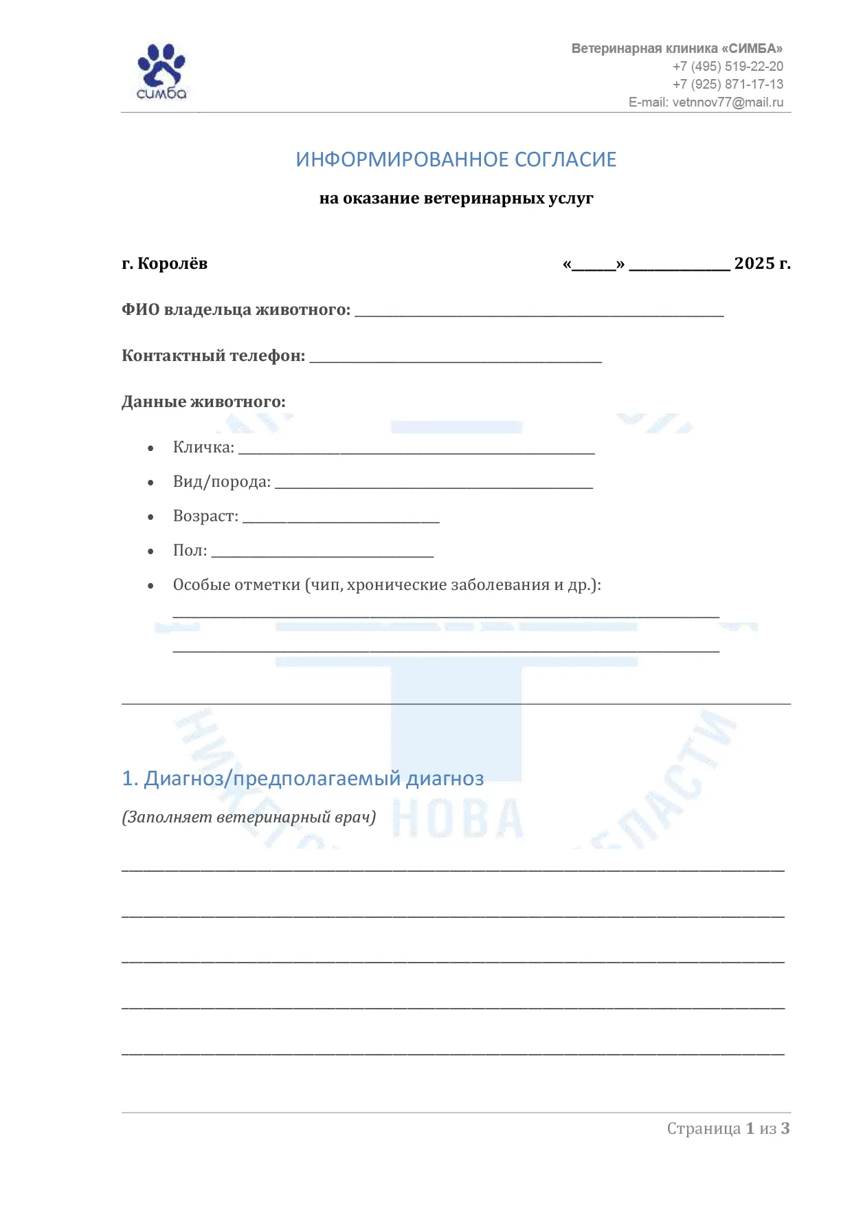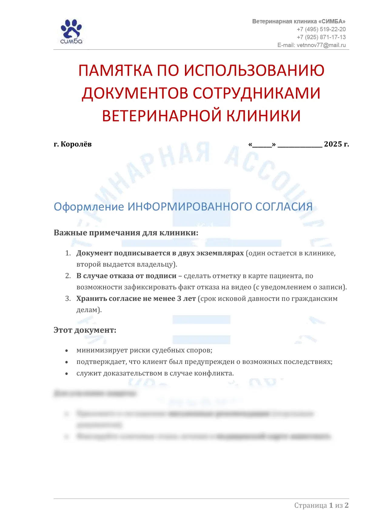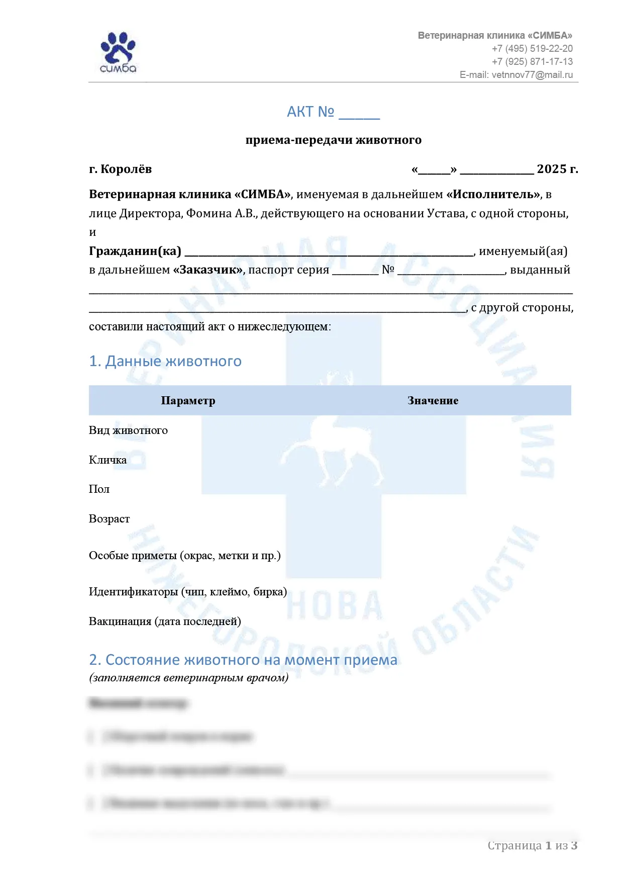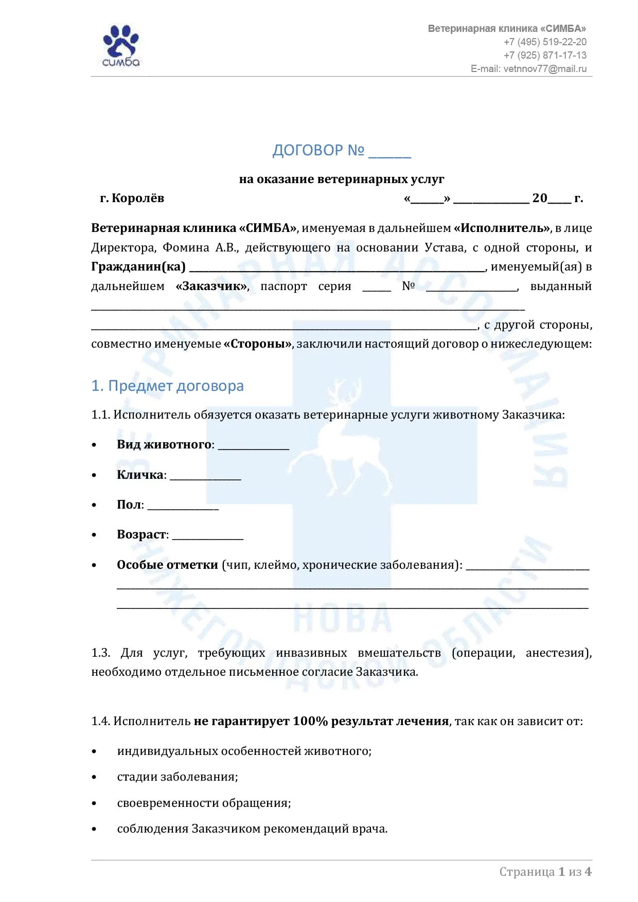 Комплект юридических документов, разработан для стандартизации и правового оформления взаимоотношений ветеринарных клиник и специалистов с владельцами животных.