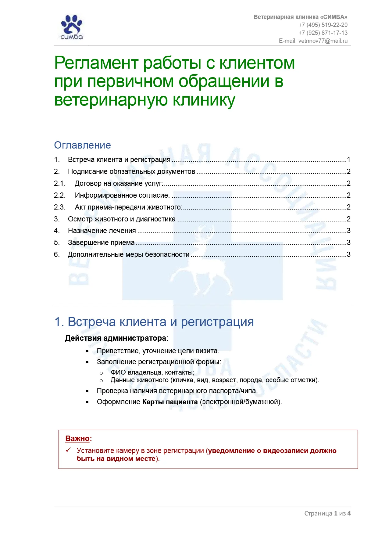 6. Регламент работы ветеринарного врача/ клиники с пациентами.