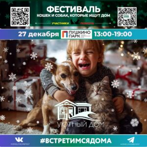 27 декабря 2025 года директор ветеринарной клиники «СИМБА» Андрей Фомин будет на очередном Фестивале по пристройству бездомных питомцев «Уютный дом» в Пушкино-парк.